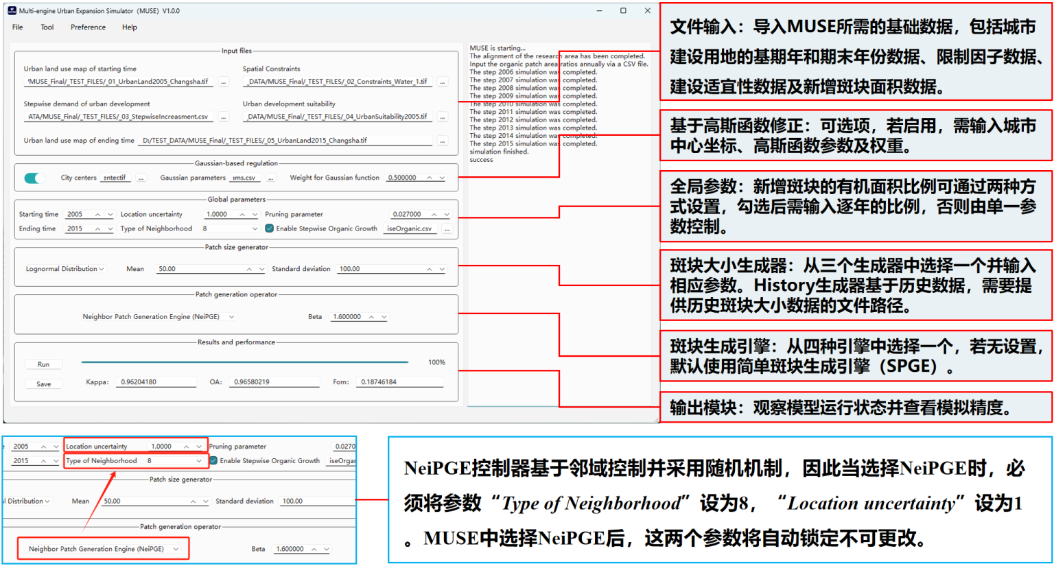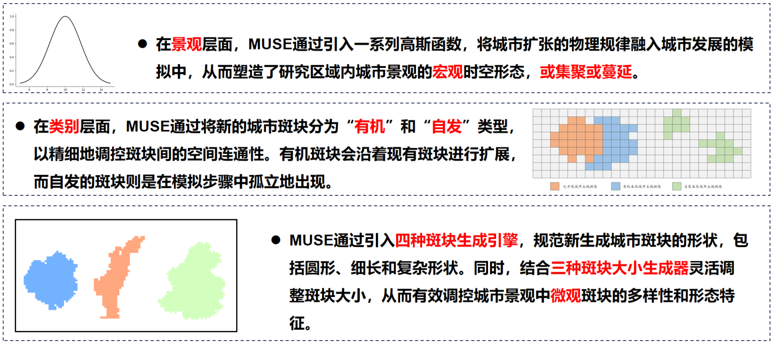 MUSE是一款基于元胞自动机的土地变化模拟软件,通过多个斑块生成引擎模拟城市发展过程,实现了城市发展事件表示从元胞级到斑块级的扩展。MUSE由中国地质大学(武汉)公共管理学院杨建新老师及其指导的硕士研究生石锐共同开发(联系方式:shirui@cug.edu.cn)。此外,MUSE还提供了三种斑块大小控制器,用于确定斑块的大小。通过使用MUSE,用户可以模拟城市的扩张过程,根据不同的算法和生成器选择,获得不同形状和大小的斑块,生产不同的城市土地空间结构模式。该模型在城市规划、土地利用规划和土地资源管理和决策支持等领域具有重要的应用价值。