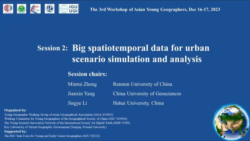第三届亚洲青年地理学家研讨会于2023年12月16-17日在线上举办。会议以“新时代的地理学”为主题,将邀请8位专家学者作特邀报告,同时围绕会议主题组织20个分会场进行学术交流。本次会议安排了8场主旨发言和报告,超过300篇论文被会议接收,其中75篇论文具有汇报资格,需要在各分会场进行专题汇报。会议累计参加人数超过600,累计观看人次过万。